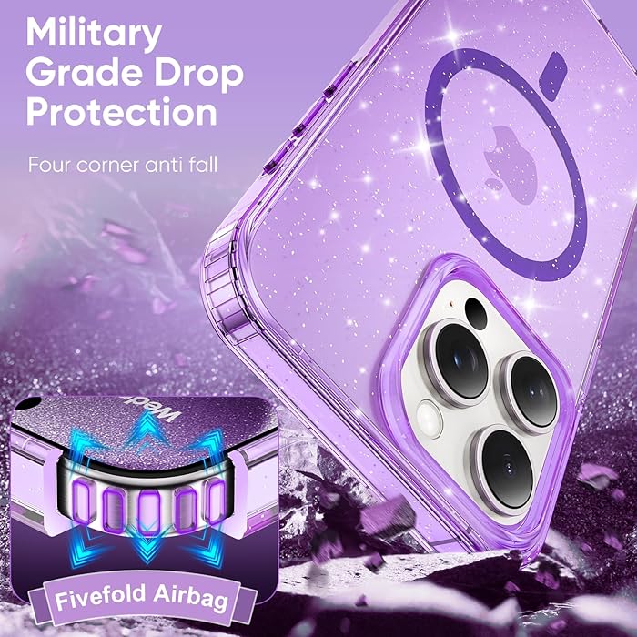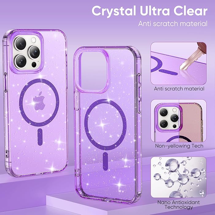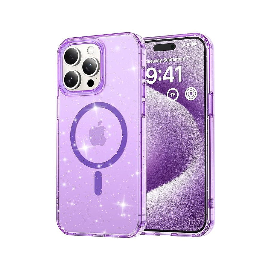 iPhone 15 Pro - Case Glitter - Magsafe - Lila