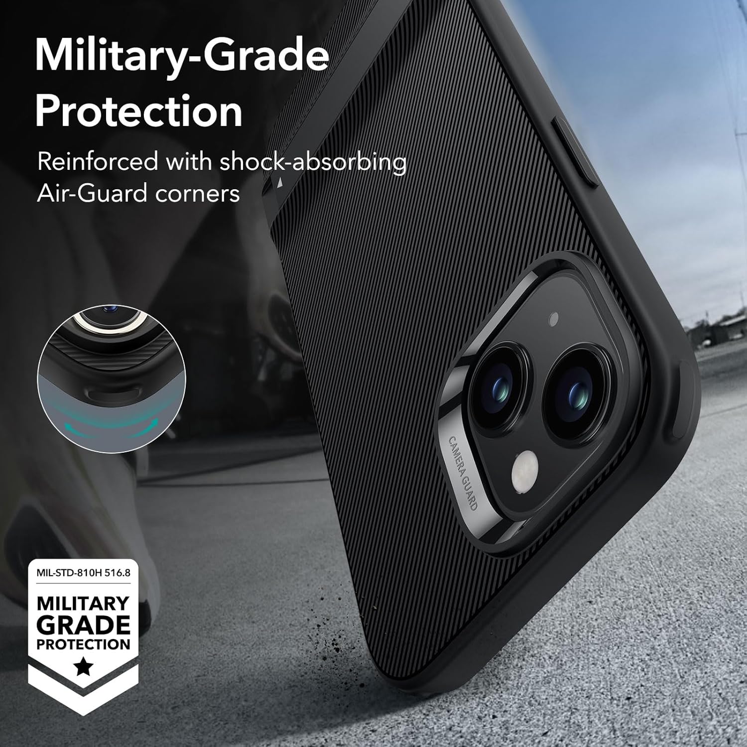 - Protección de grado militar: esquinas Air-Guard que absorben los golpes, bordes elevados de la pantalla y protector de cámara se combinan para garantizar una protección certificada de prueba contra caídas, golpes y arañazos