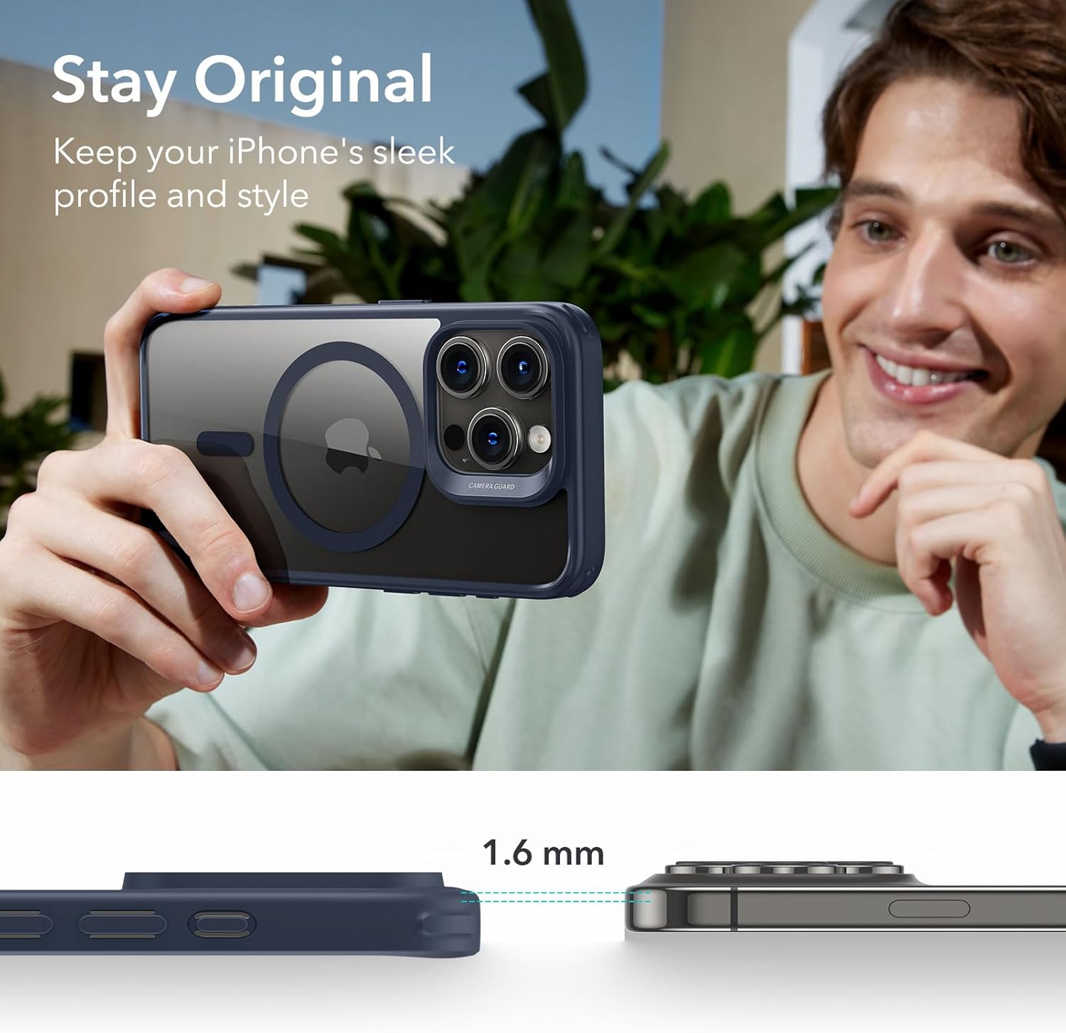 - Protección de borde elevado: los bordes elevados de la pantalla y el marco de la lente Camera Guard proporcionan una protección mejorada contra los arañazos donde realmente cuenta