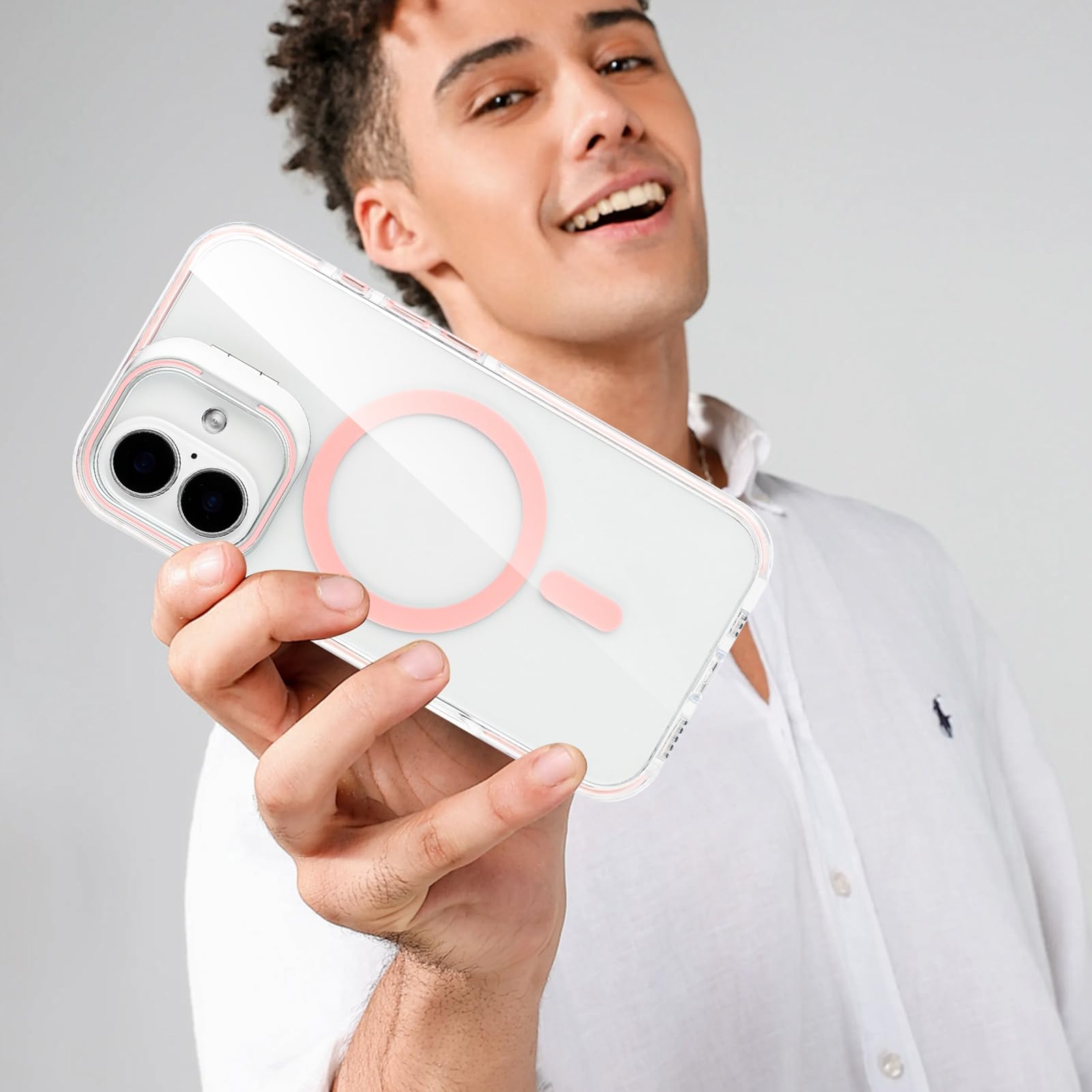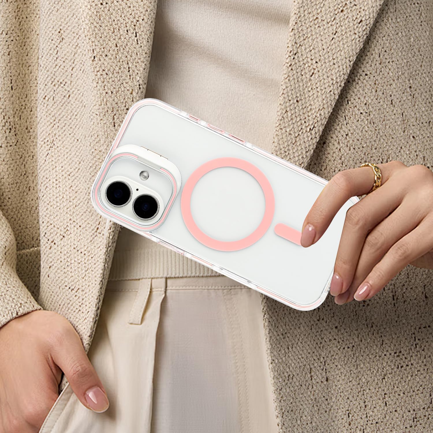 iPhone 16 - Case MagSafe - Stand Cámara - Clear Pink