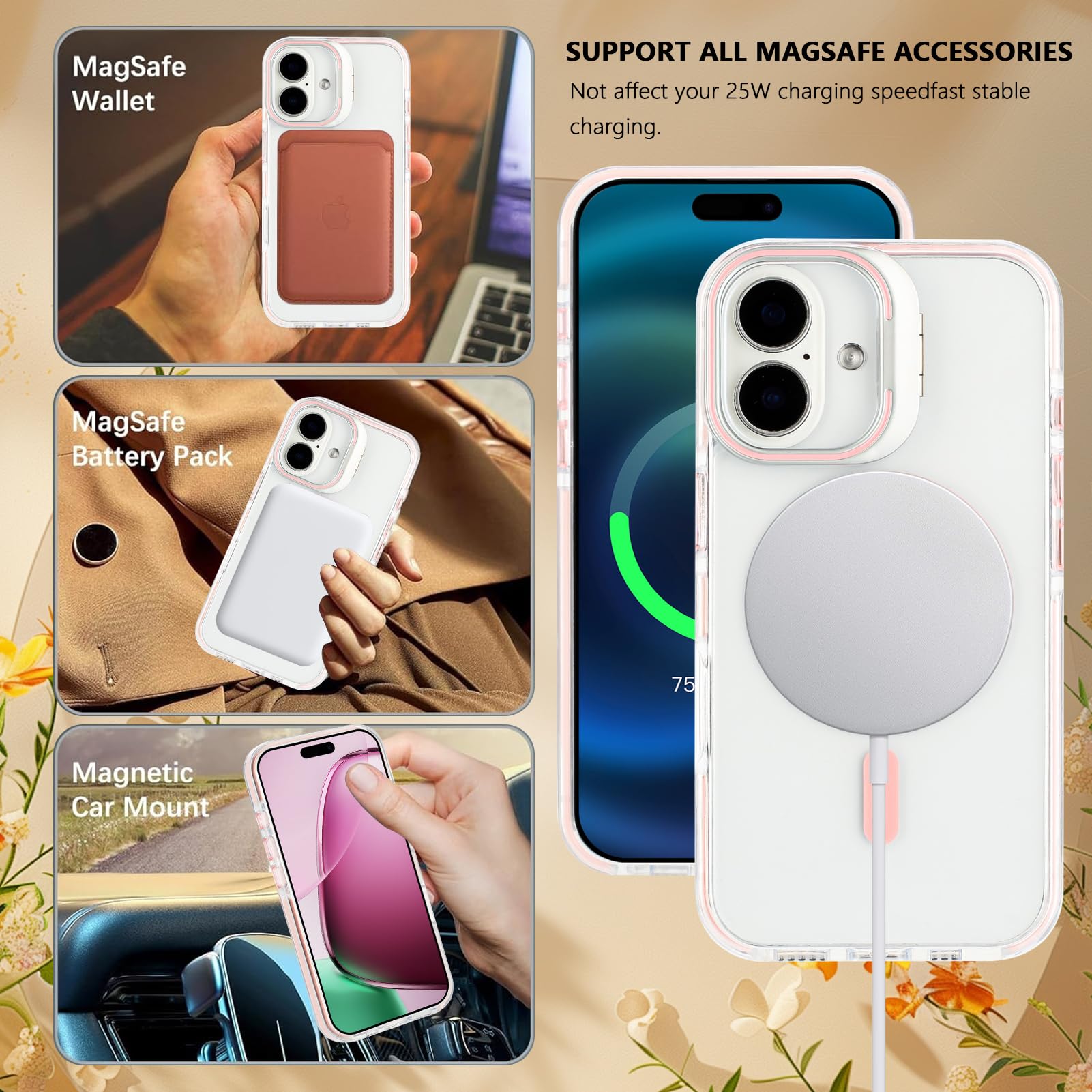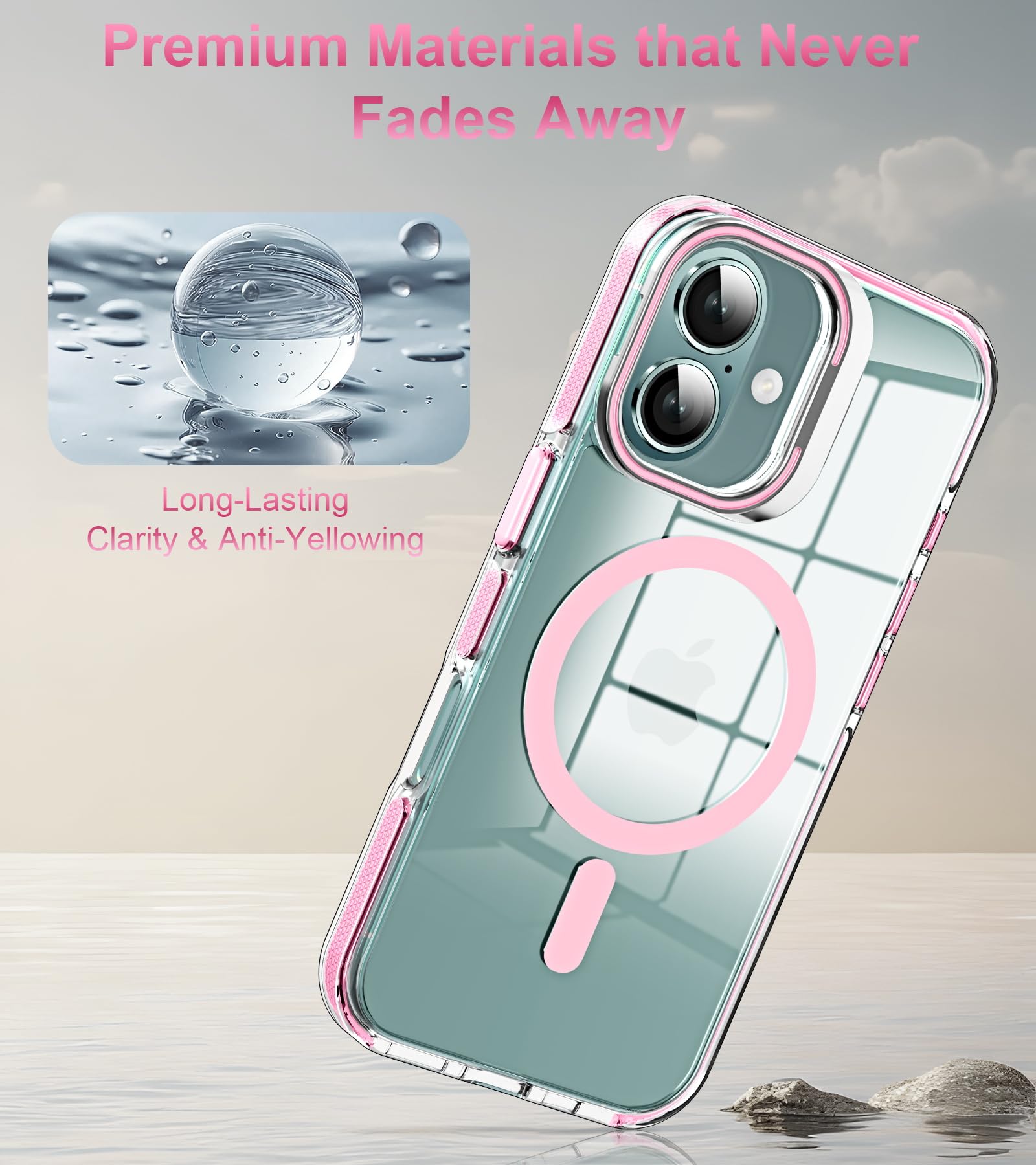 - Perfil delgado: Exclusivamente para iPhone 16 de 6,1 pulgadas. Tenemos en cuenta la estética y la protección. Esta cubierta protectora no hará que su teléfono se vea voluminoso y admite Magsafe y carga inalámbrica