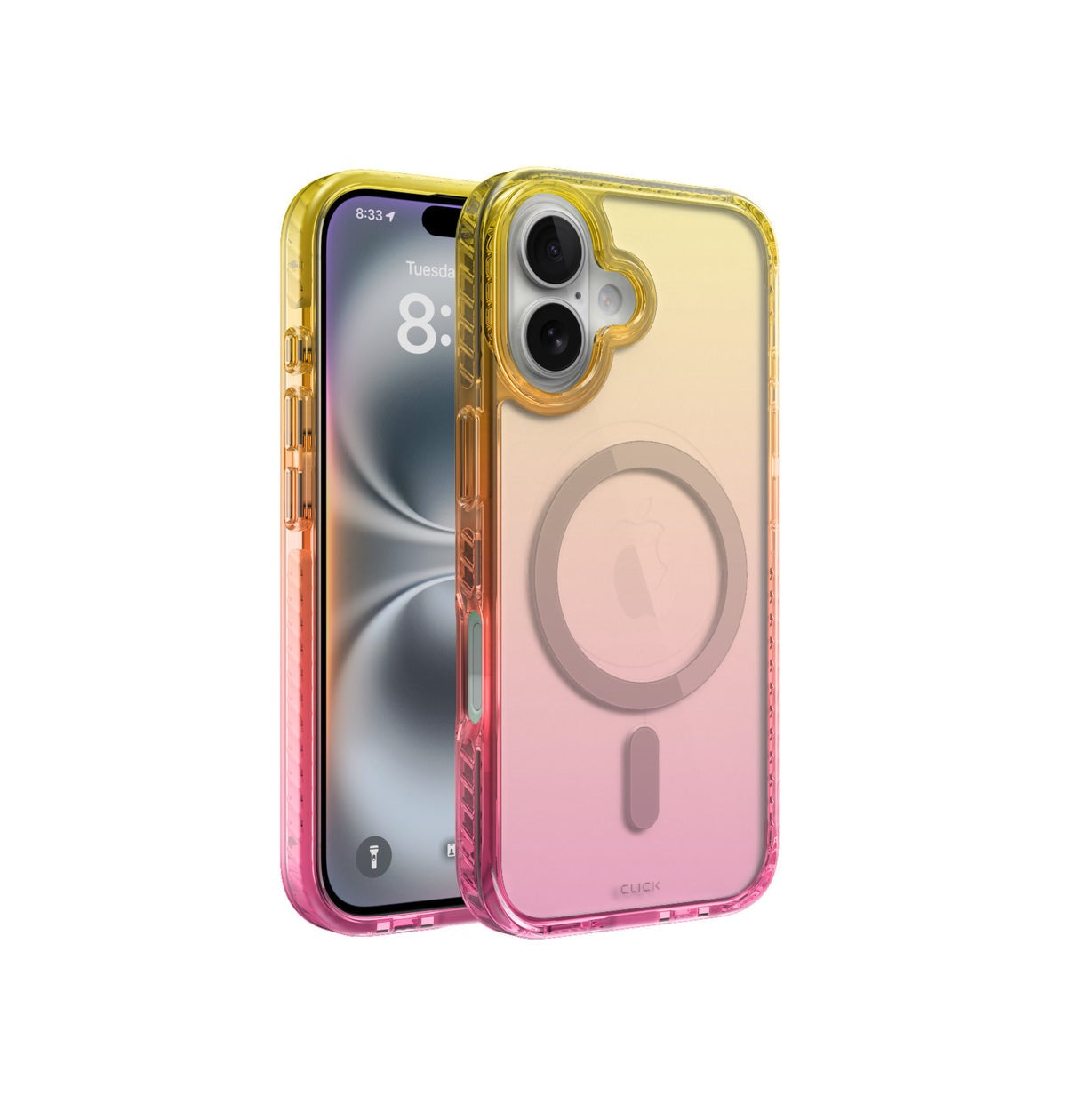 Destaca con la funda CLICK Clear Ombre , que combina colores vibrantes con protección diaria . Diseñada para quienes buscan estilo y funcionalidad , esta funda presenta un impresionante degradado que se adapta a la perfección, manteniendo tu teléfono seguro y sin rayones . Compatible con MagSafe , garantiza una carga inalámbrica sin complicaciones y una conexión perfecta con los accesorios.
