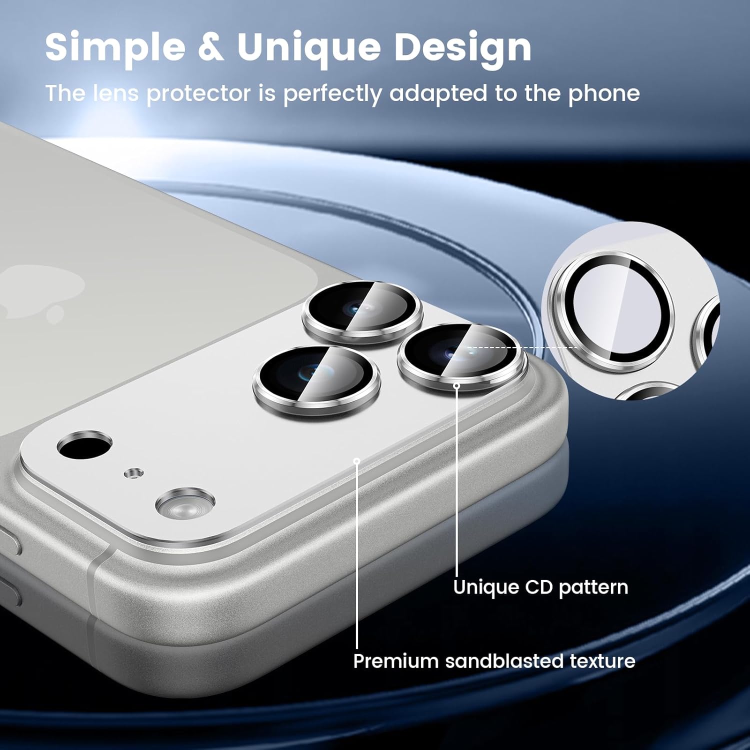 iPhone 17 Pro Max - Protector de Cámara 360° - Aluminio - Anti Reflejo - Plata