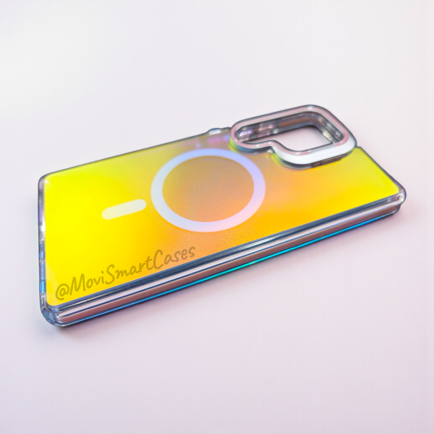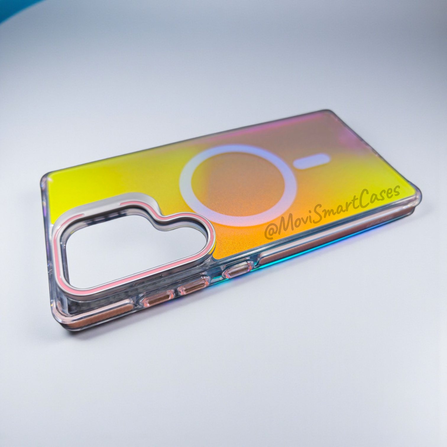 Protege tu Samsung S25 Ultra de manera minimalista y resistente a las caídas con la funda Iridiscente de iFans. Con bordes en color negro, rosa o turquesa y una tapa arcoiris tornasolada que cambia de color según la luz, esta funda cuenta con un círculo magnético MagSafe y un soporte en cámaras para disfrutar de tus series favoritas.